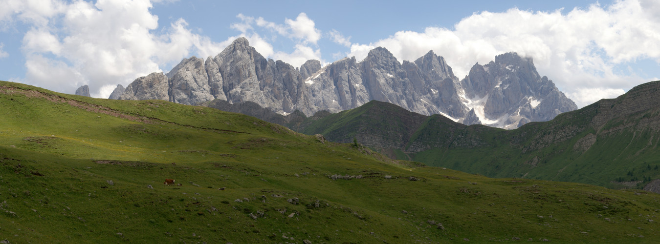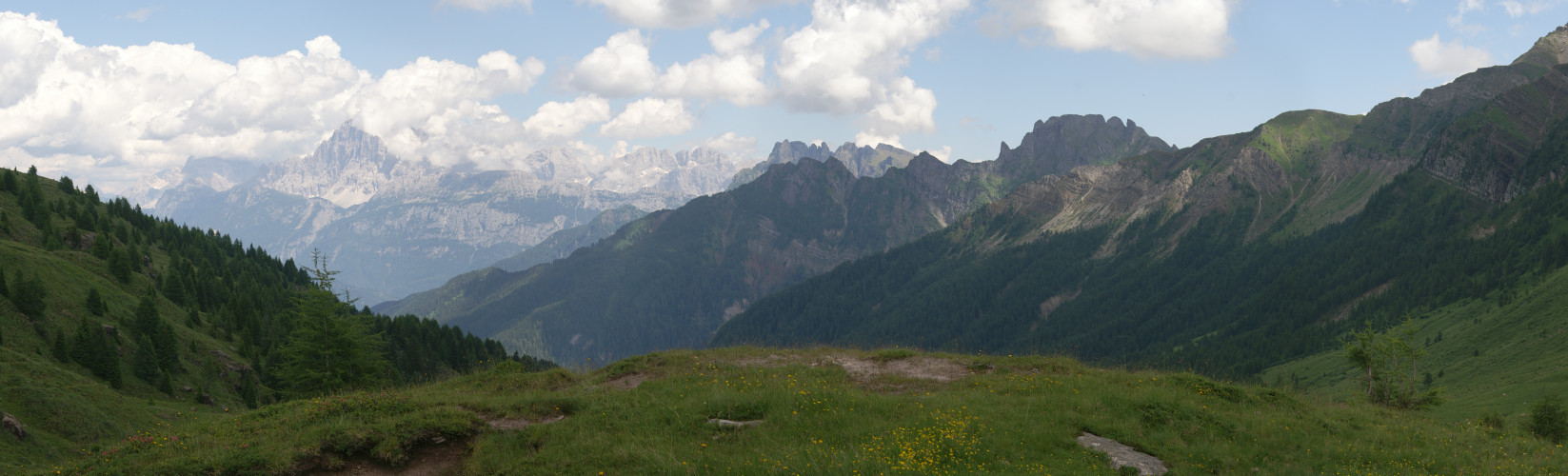 I got up quite early in the morning to get cloud-free photos of the view from the hostel (Rifugio Flora Alpina) to the Focobon range of mountains.