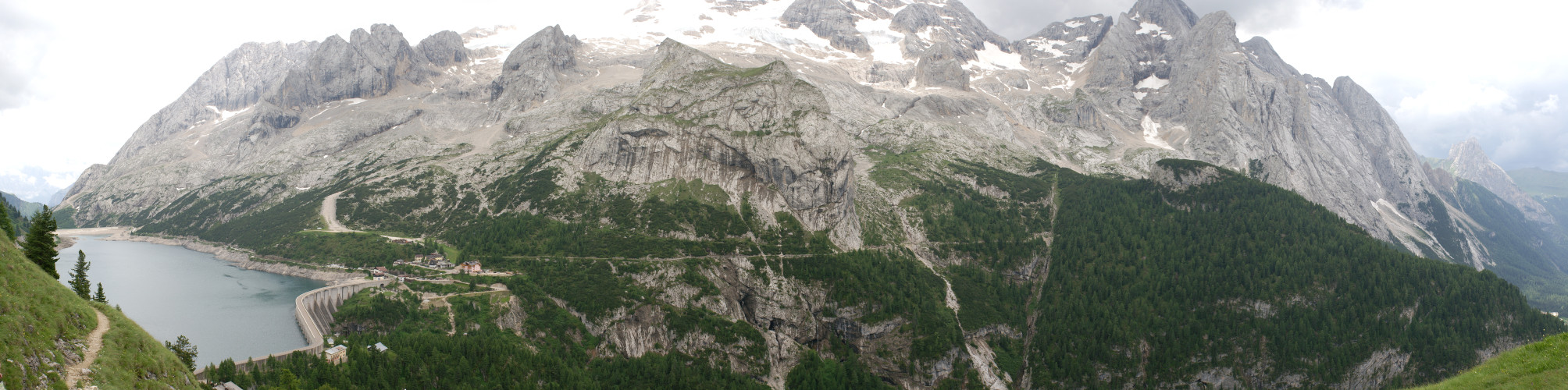 After following the ridge for quite a distance, we dropped down to Lago di Fedaia, and crossed the dam to the town the other side.